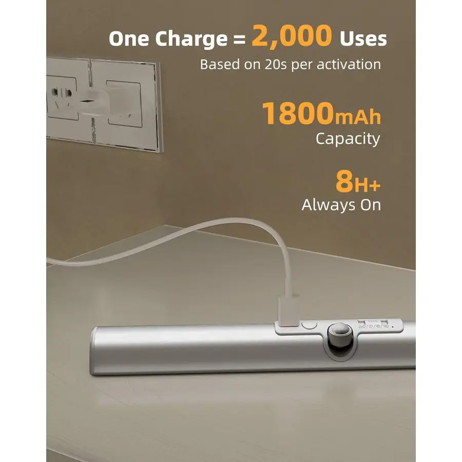LongLasting amp Rechargeable Closet Light Powered by a builtin 1800mAh battery, this rechargeable closet light lasts 3045 days in Auto modeabout 2,000 activations per charge. It also runs for 8 hours continuously in AlwaysOn mode. Recharge quickly and easily via the included USBC cable.